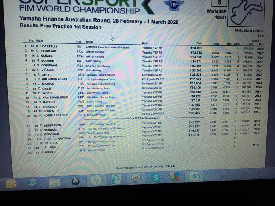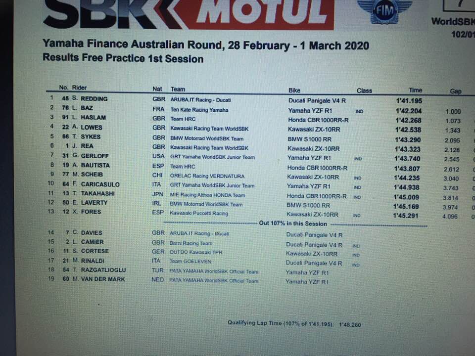 Primo turno con la pioggia, promettente però l'inizio di Redding viste le grandi difficoltà che incontravano le Ducati lo scorso anno sul bagnato. Le Yamaha si confermano tutte veloci ma le Kawaaki sono lì e la Honda pure.