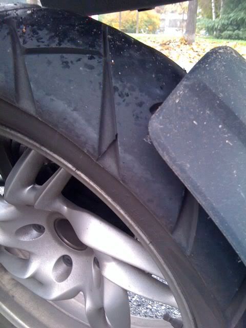 Le ho cambiate per una questione di prudenza, dopo tanti km erano diventate un po' dure e visto che andiamo verso l'inverno e uso la moto tutti i giorni preferisco avere la gomma in perfetto stato. Comunque probabilmente avrebbero fatto ancora un po' di strada, sebbene la scalinatura all'anteriore fosse ormai evidente (e in piega si sentiva, sia con vibrazioni che con il classico rumore).