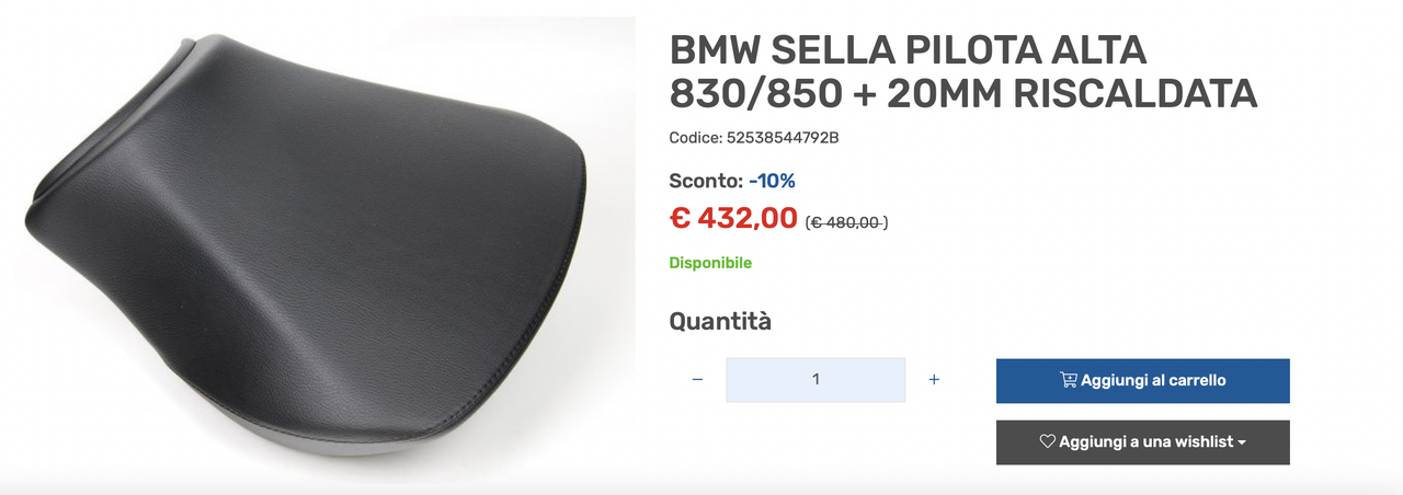la sella riscaldata originale bmw costa di listino intorno ai 420/450€, io l’ho pagata meno visto che ci ho preso anche la moto, ma l’ho ordinata insieme ai paracilindri e abbiamo fatto un prezzo unico.