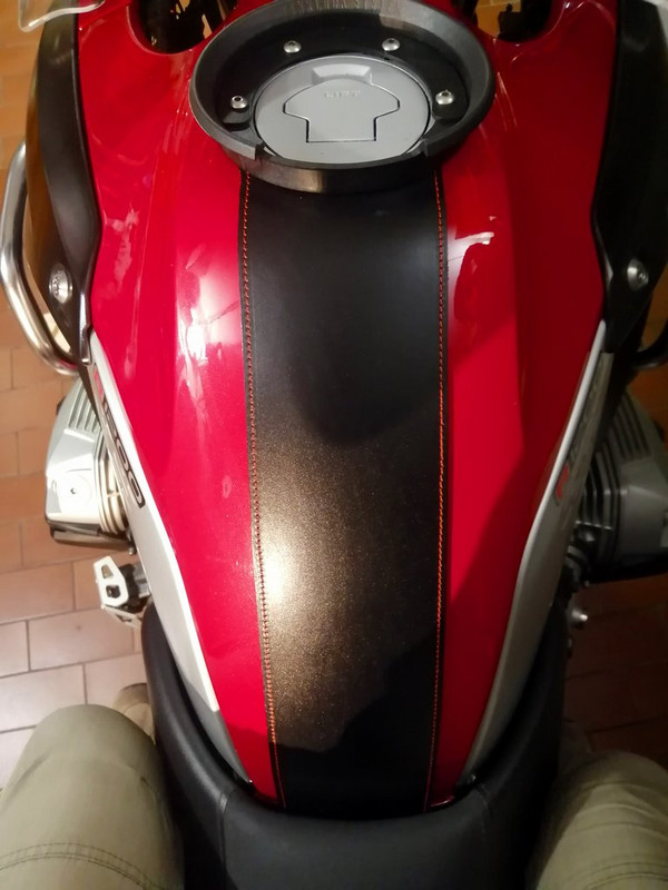 Stanco dei soliti adesivi paraserbatoio applicabili per non rovinare il serbatoio con i bottoni della giacca, mi sono inventato questa striscia di cuoio fai da te.