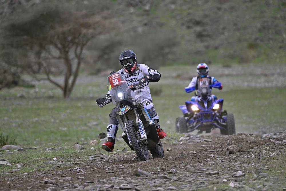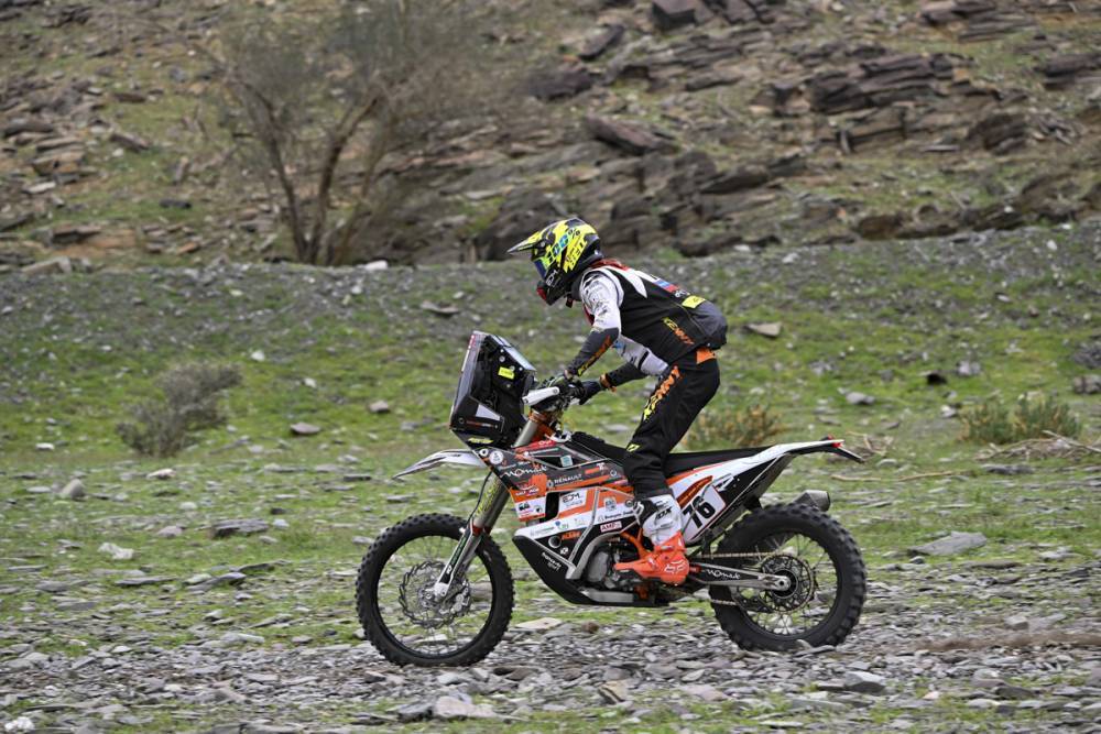 I piloti moto stano ora transitando al secondo checkpoint, posto al Km 105. Posizioni al momento stabilizzate, la sensazione è che le insidie della navigazione impongano prima di tutto di non sbagliare. Ricordo che quest'anno vengono distribuiti due Road Book differenti, a sorteggio, con diverso ordinamento dei Waypoint da individuare. Di conseguenza, seguire le tracce di chi precede potrebbe portare ad errori fatali,
