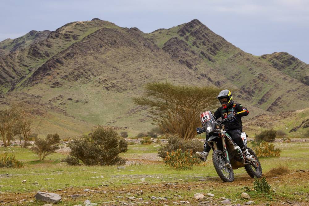 Le moto stanno superando il primo checkpoint, posto al Km 48. Sanders precede Santolino, Walkner, Price, Kevin Benavides, Howes, Brabec, barreda e Klein. Posizioni per ora puramente indicative e relative all'ordine di passaggio al checkpoint.