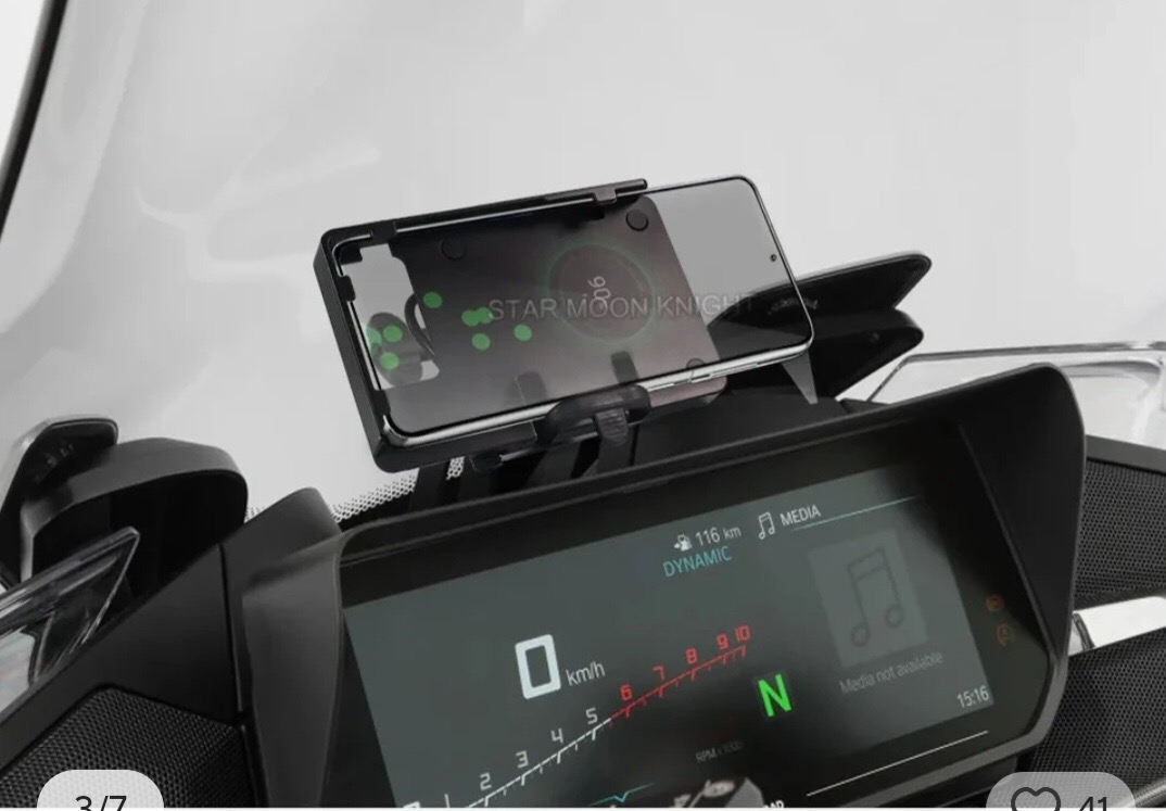 1200 rt lc 2018, modello 502 con basetta BMW, praticamente si incastra alla perfezione nel vano al centro della plancia