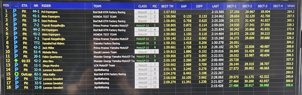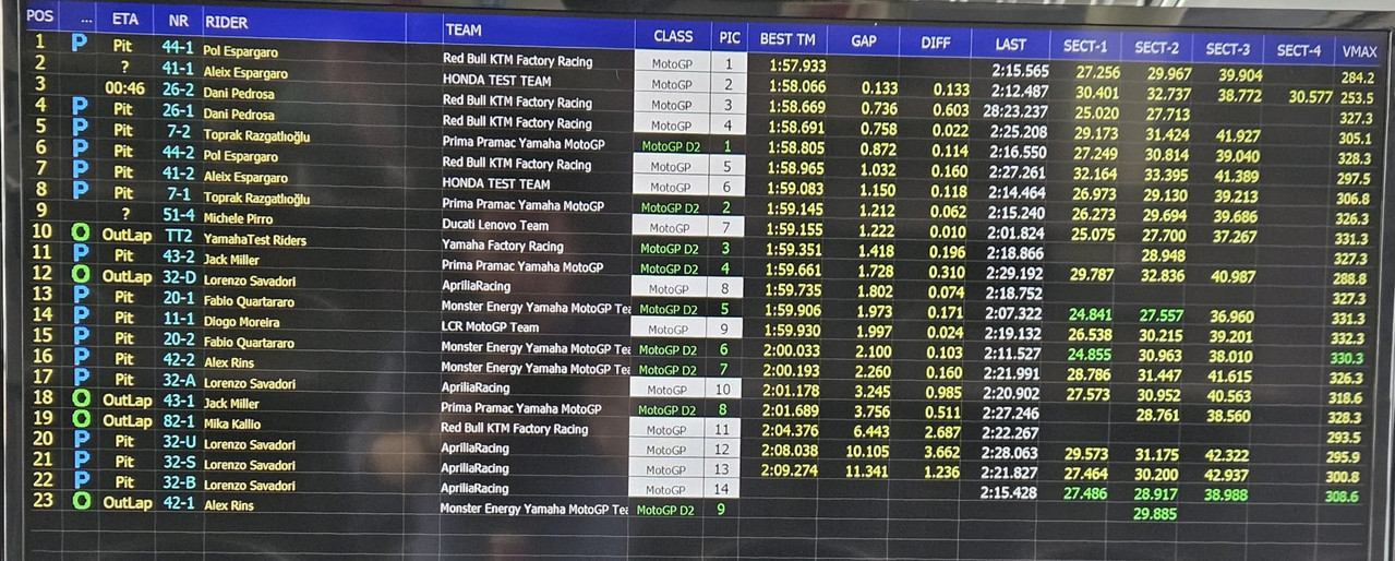 MotoGP - Shakedown Sepang Day2 - I tempi alle 14.00
