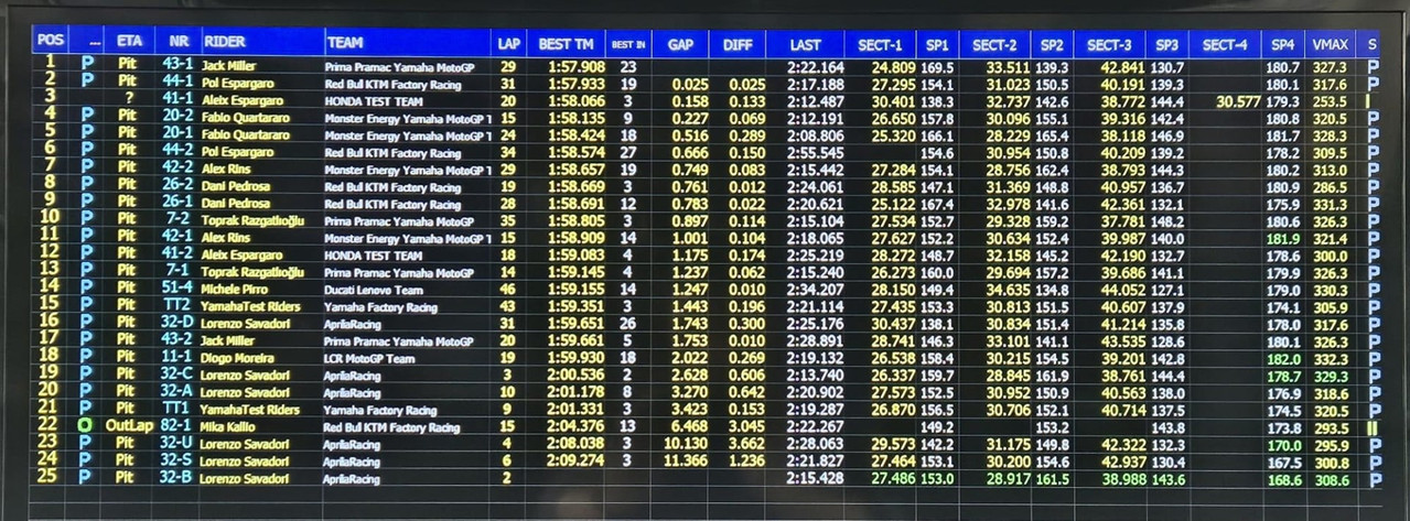 MotoGP - Shakedown Sepang Day2 - I tempi alle 17.00