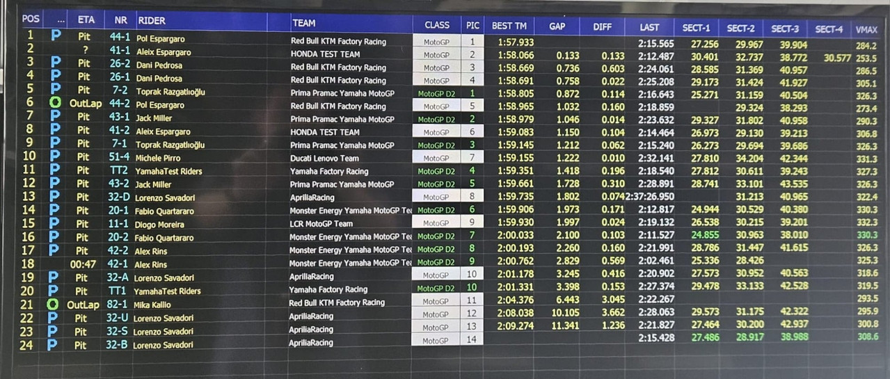 MotoGP - Shakedown Sepang Day2 - I tempi alle 16.00