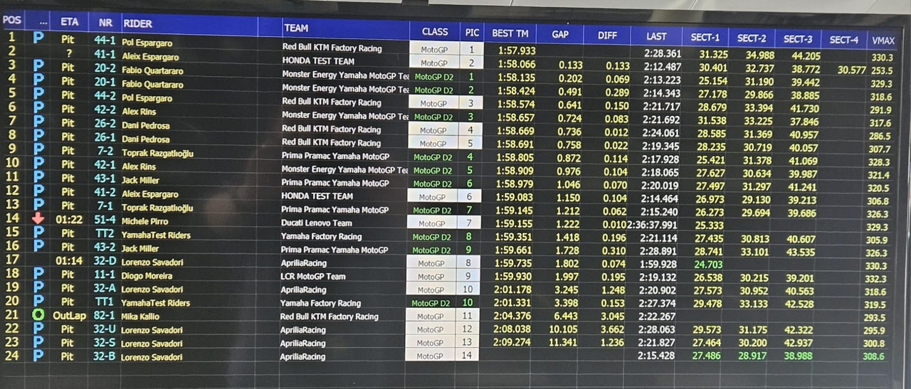 MotoGP - Shakedown Sepang Day2 - I tempi alle 14.00