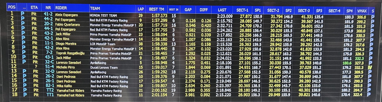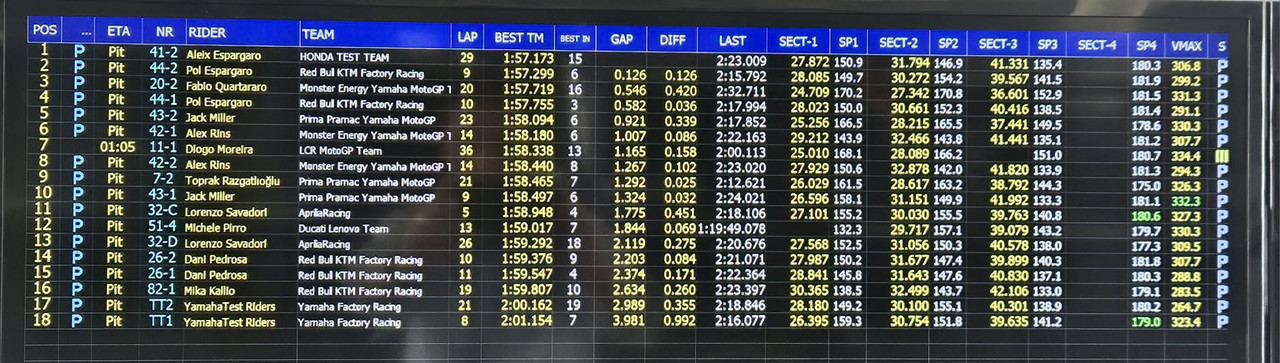 MotoGP - Shakedown Sepang Day3 - I tempi alle 12.00