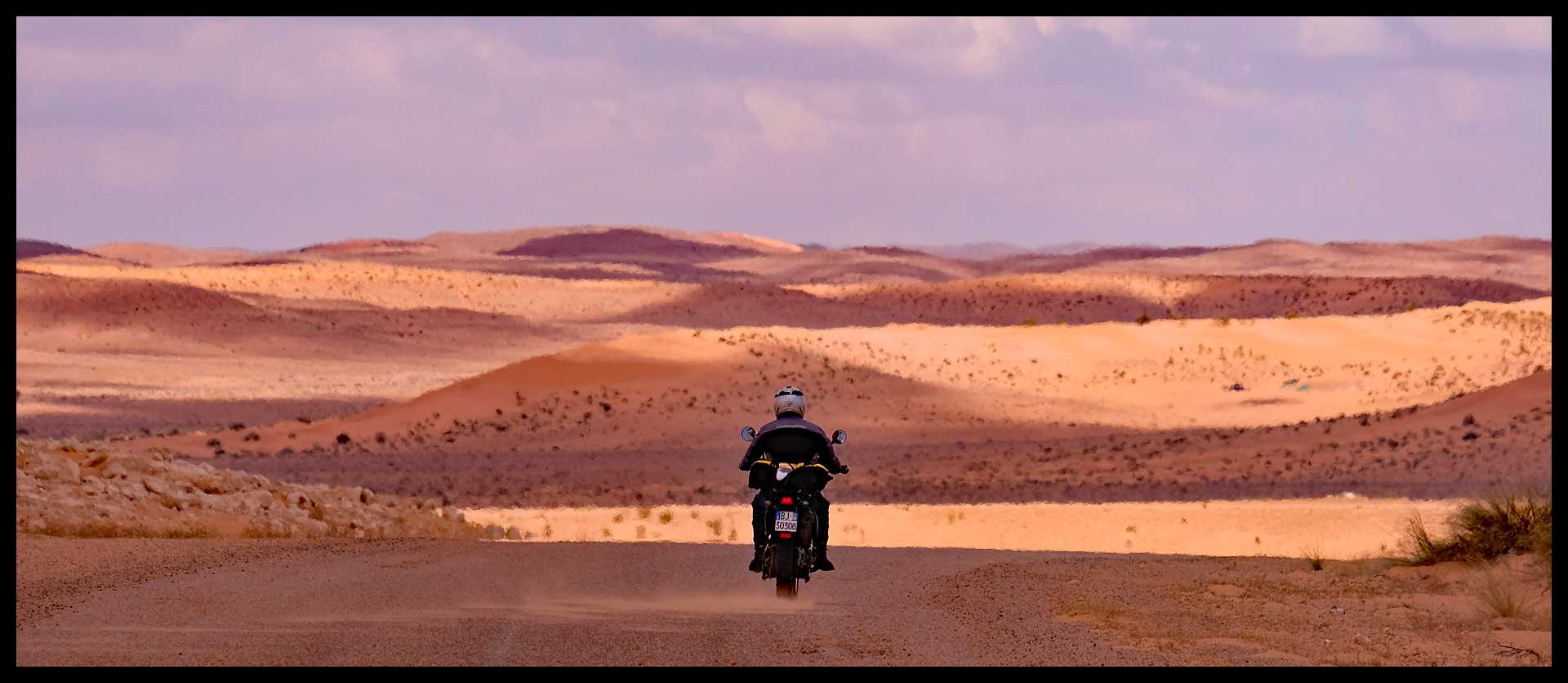 Dato che la fortuna, come ho raccontato, ci sta assistendo oltre ogni aspettativa, non abbiamo trovato nulla di così impestato. La pista è sempre ben visibile e tracciata. La sabbia è poca, anche se presente. Più che altro occorre beccare i solchi che si creano dai vari passaggi e tenerli cercando di stare diritti.