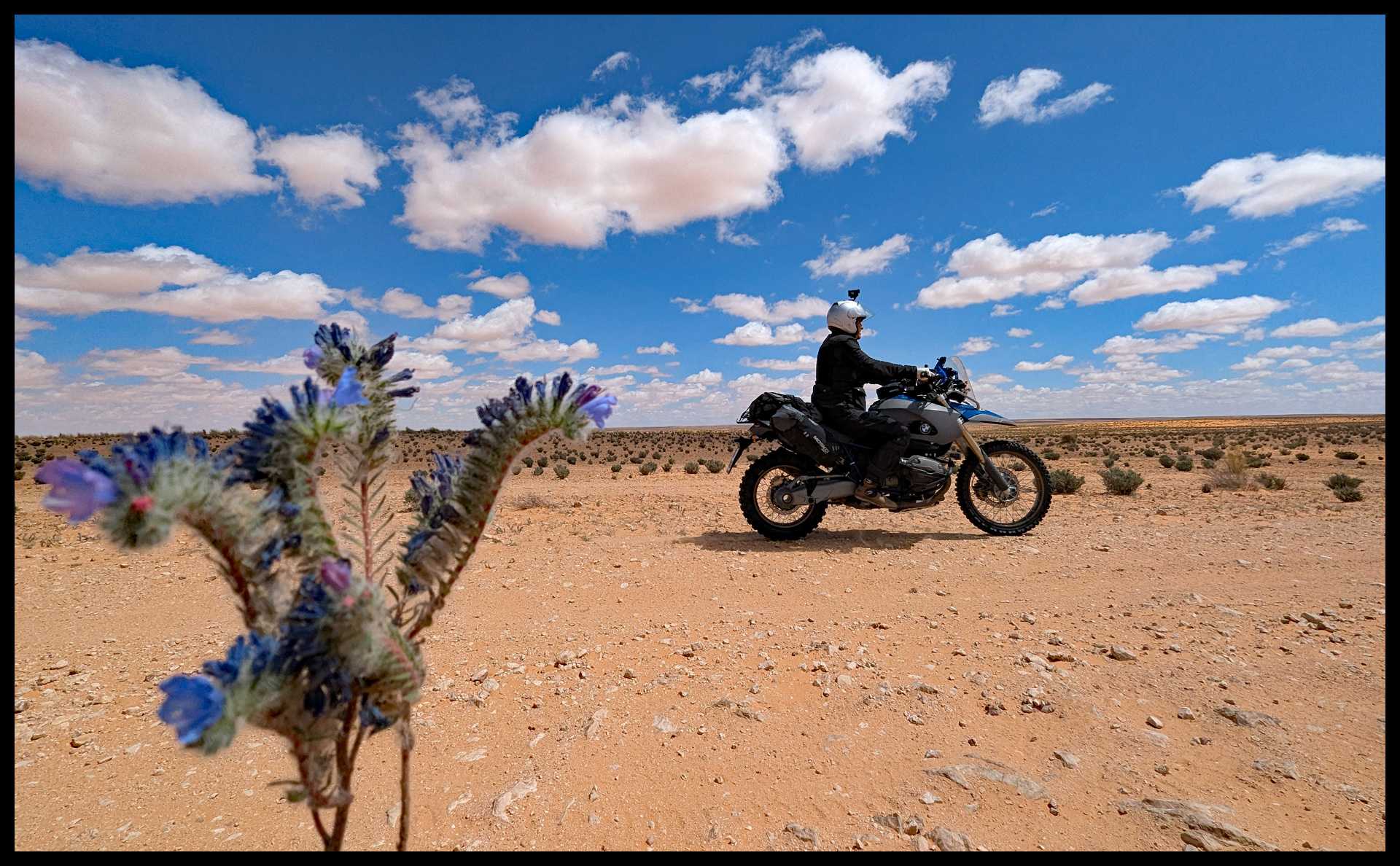 Questi 34 km di asfalto scorrono placidi e rilassati. E’ un piacere guidare. Il paesaggio sta cambiando. Le dune sono finite. Hanno lasciato spazio a distese sconfinate di terra arida, ma più compatta. All’orizzonte, nella nostra direzione di marcia, si intravedono le sagome delle montagne.