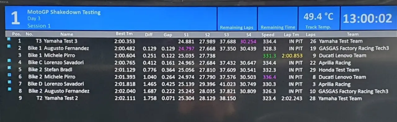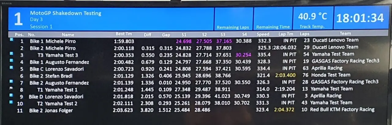 MotoGP - Shakedown Sepang Day3 - I tempi alle 6 (13 locali)