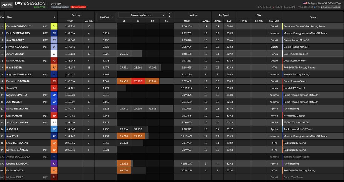 MotoGP -Test Sepang Day2 - I tempi alle 11.00