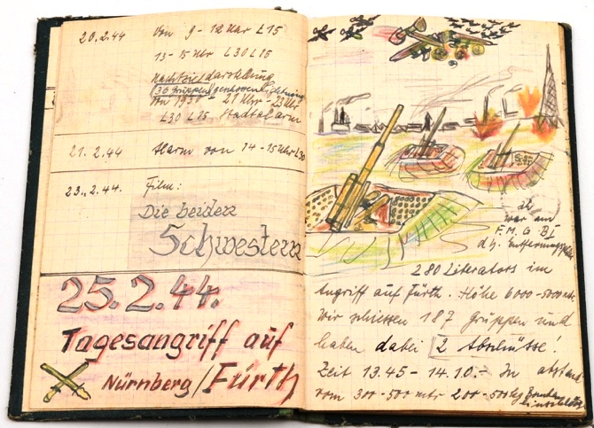 Foto, documenti ed il suo interessantissimo diario giornaliero di nove mesi di servizio (1944-45) con i disegni a colori di battaglie contro i raid alleati e abbattimenti aerei da parte della sua batteria