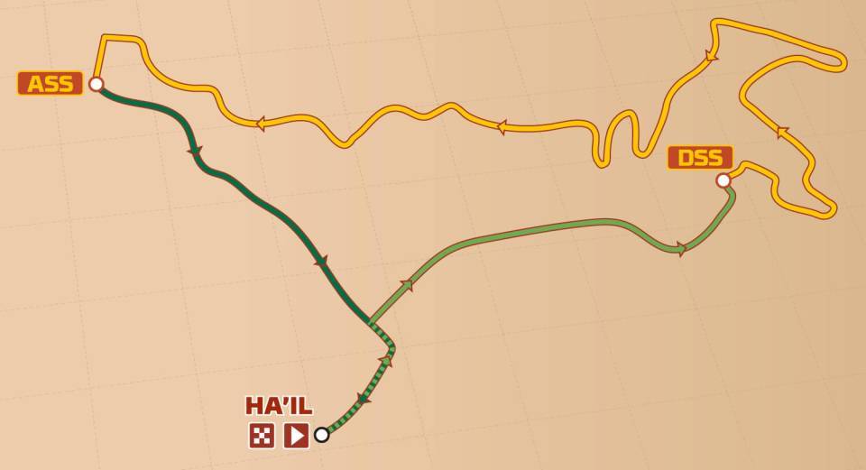 Seconda tappa ad anello consecutiva, con partenza e ritorno al bivacco di Ha'il. Una frazione che, a detta degli organizzatori, si presenta estremamente tecnica e dovrebbe premiare capacità di guida ed esperienza. Ancora distese sconfinate di sabbia a fare dascenario, con dune di piccole dimensioni ma estremamente soffici ed impegnative da scavalcare, Nei tratti più scorrevoli, l'insidia, spesso fatale, dei ciuffi di camel.grass che costringono a veri e propri 'slalom' jn velocità.