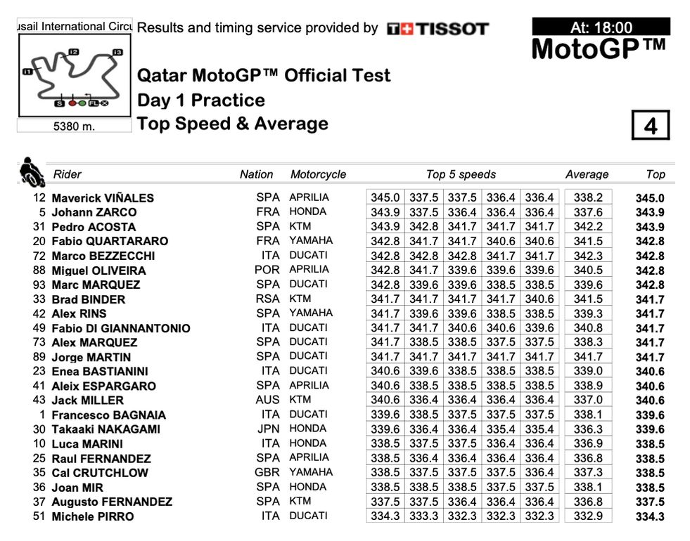 MotoGP - Test Losail Day1 - Velocità massime