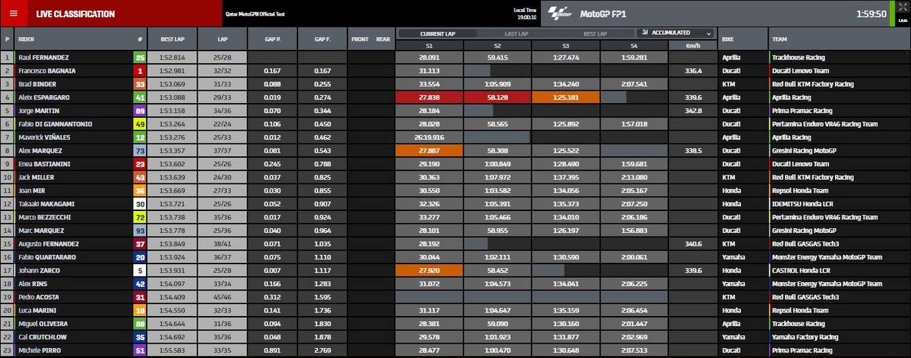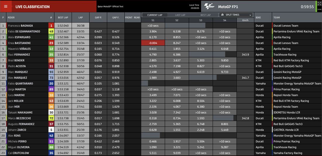 MotoGP - Test Losail Day1 - I tempi della prima giornata