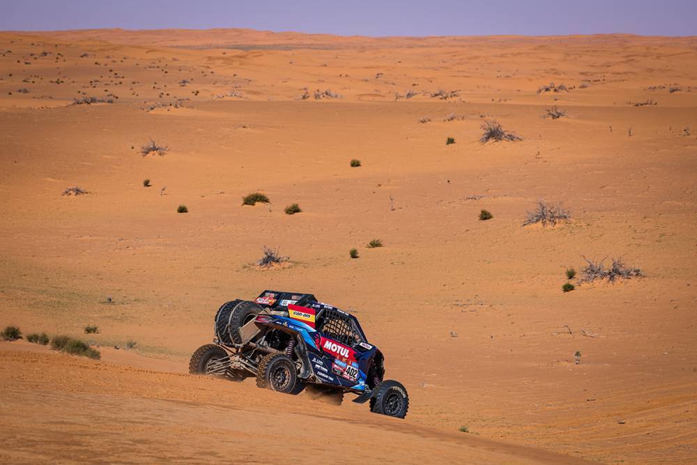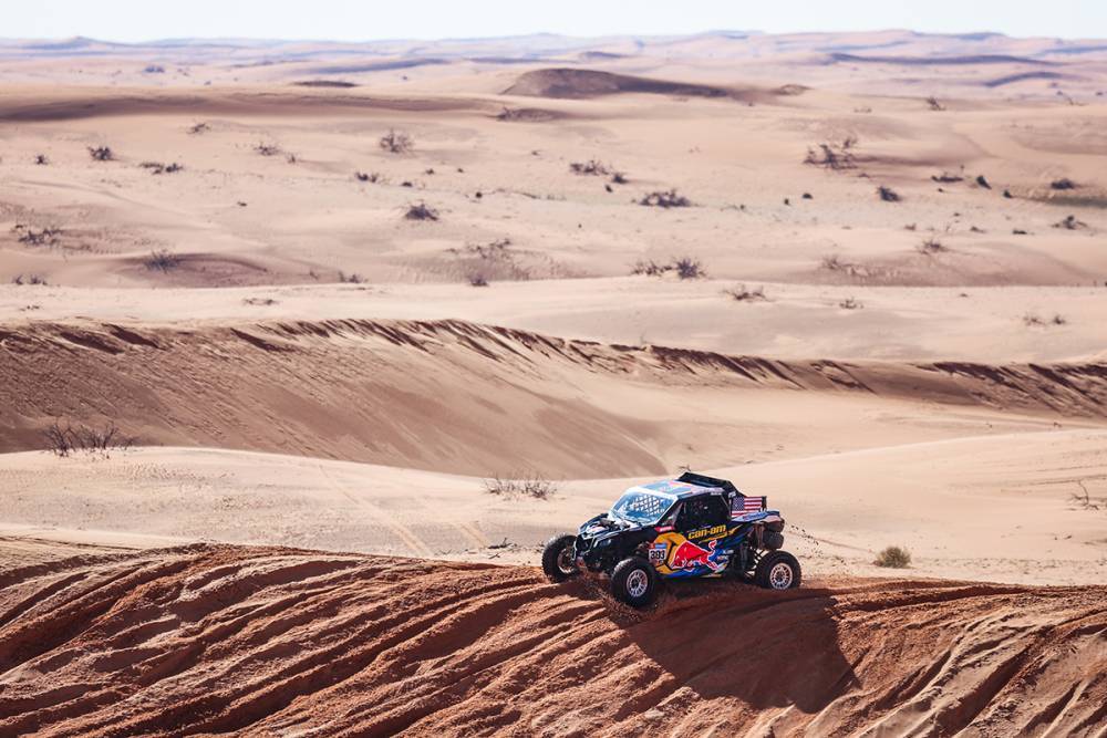 Le auto sono al Km 282, Loeb sempre primo mentre ora al secondo posto si è portato Al-Attiyah, che precede Peterhansel, Sainz, Al Rajhi e Lategan.