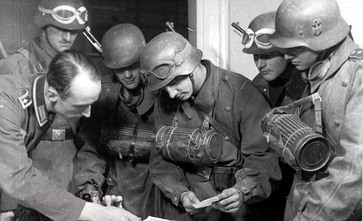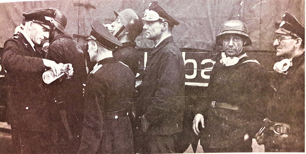 Questa foto apparve sull'Illustierte Beobachter e ritrae una squadra della Luftschutz e dei sevizi di assistenza SHD durante una pausa nelle operazioni di soccorso il 1° agosto 1943 dopo lo spaventoso attacco a Remscheid, che la portò ad essere la quinta città tedesca con il maggior numero di danni in % durante la guerra.