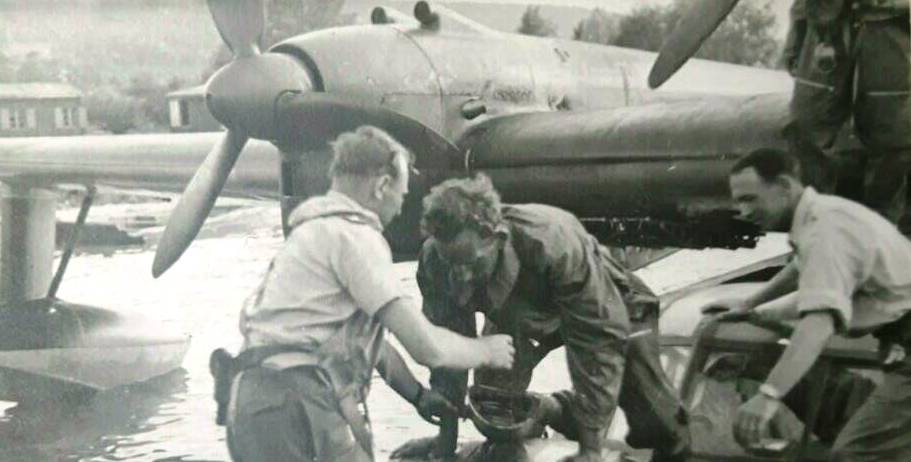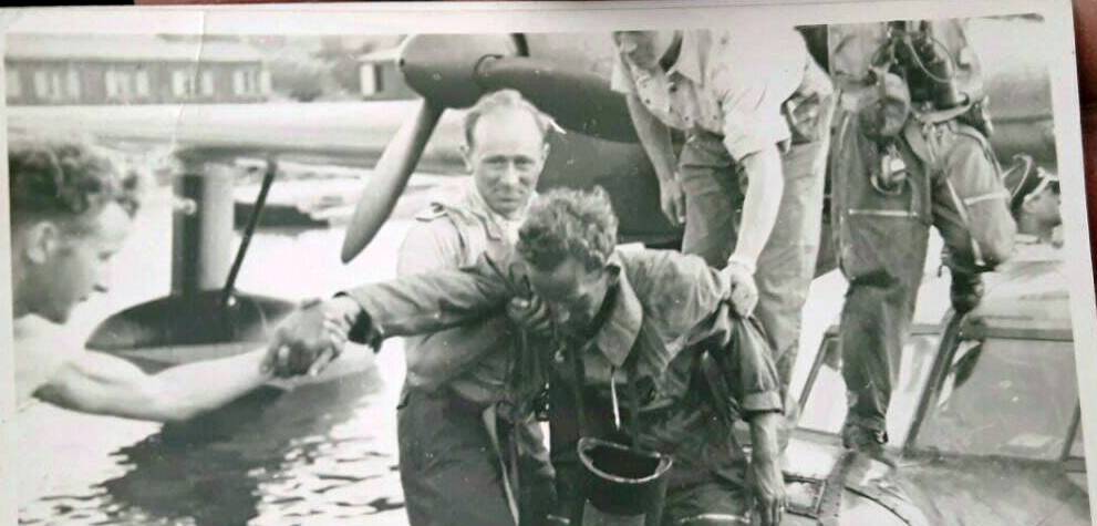...da questa seconda foto capiamo che la data è almeno della primavera del 1941: l'imboccatura del tubo di insufflaggio orale del salvagente dell'aviatore chinato a destra della foto è cromata (mod. B-1 arrivato a fine 1940), mentre quella dell'aviatore in primo piano è in plastica nera (mod. B-2 arrivato a primavera 1941).