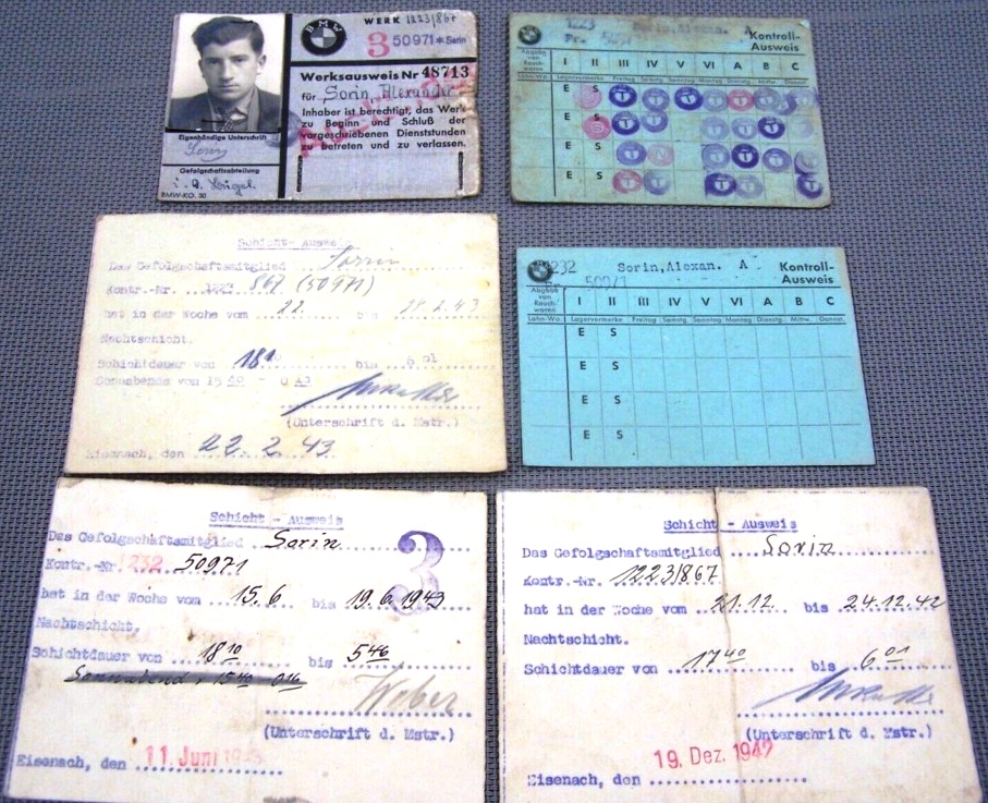 Documenti di identità per un internato francese impiegato nelle fabbriche BMW di Monaco ed Eisenach, 1942-'43: