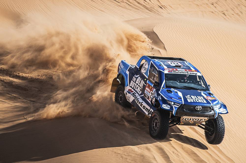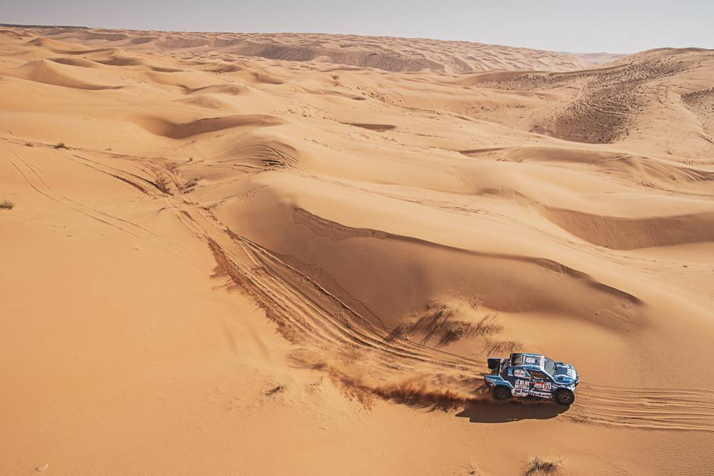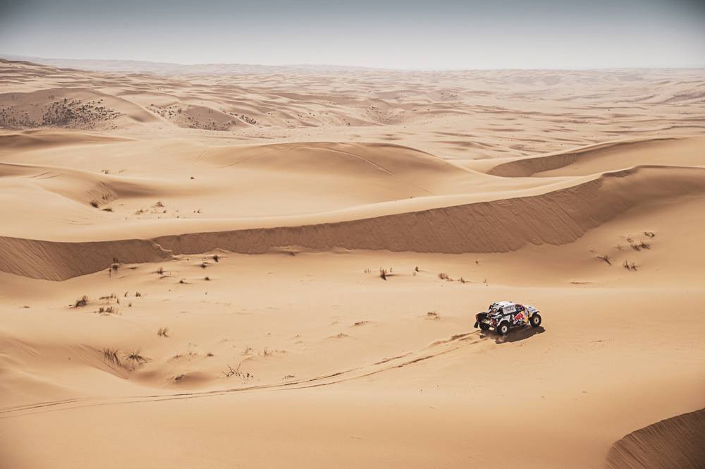 Tra le auto, forcing di Loeb che all'ultimo check point prima dell'arrivo ha guadagnato 4ò30 ad Al-Attiyah.