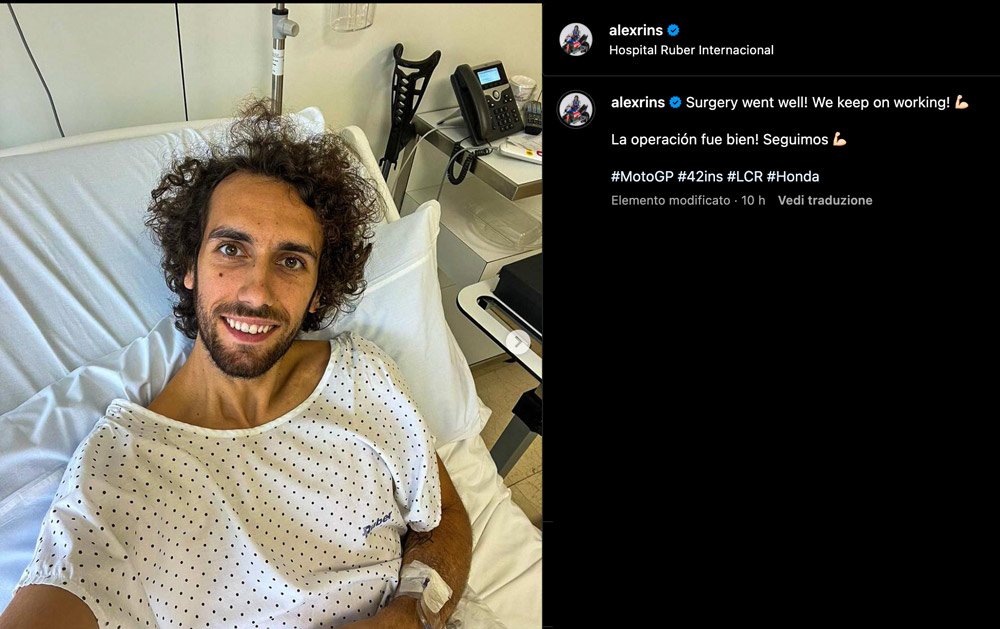 Alex Rins operato, intervento riuscito
