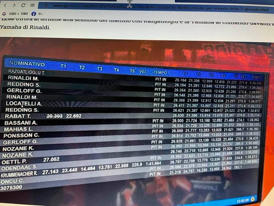ll SBK test Misano - I tempi alle 12
