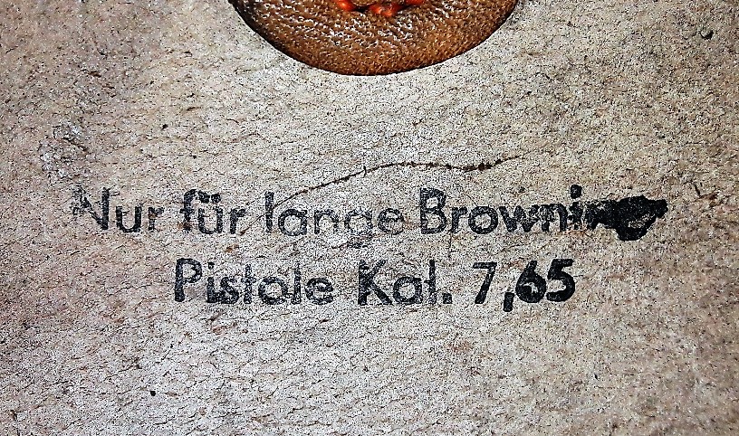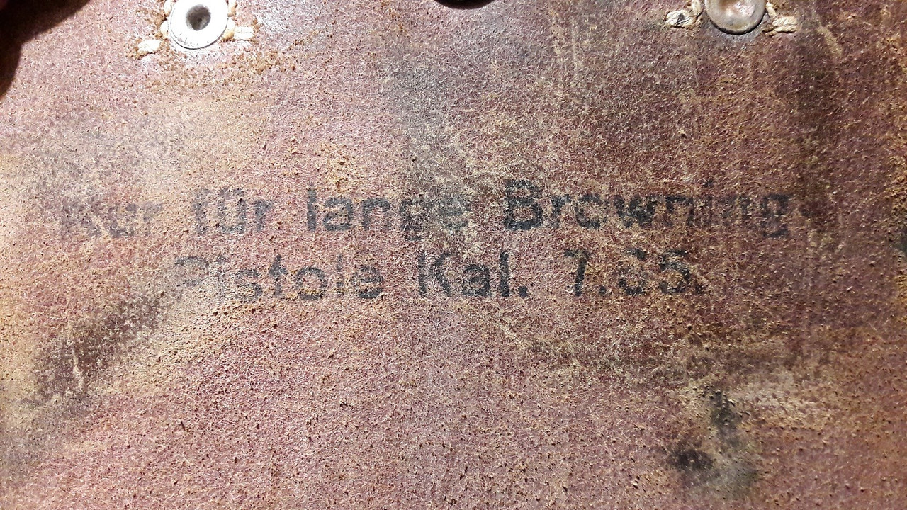 Per Browning 7.65, costruttore Gustav Genschow u. Co. AG, Lederwarenfabriken di Alstadt-Hachenburg (codice jhg) e datata 1943.