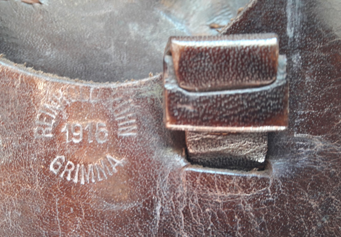 Per l'aviatore prussiano del 1918 della Luftstreitkräfte, la forza aerea imperiale branca dell'Esercito, ho scelto una fondina per pistola Luger, produttore Reinhold Kuhn di Grimma (Sassonia) datata 1916.