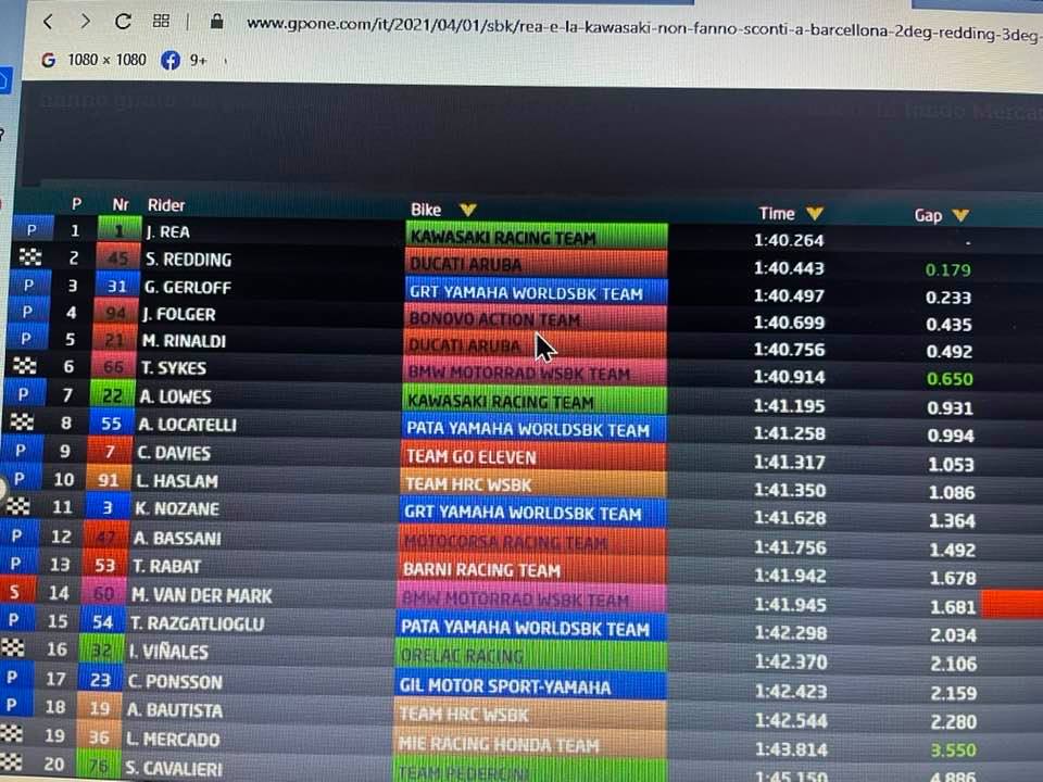 Grandi tempi a Barcellona e Rea come sempre non si è lasciato sfuggire l'occasione per stampare il record. !.40. 264 il crono del campione del mondo con Redding a meno di due decimi e Gerloff che si conferma con il terzo miglior tempo-