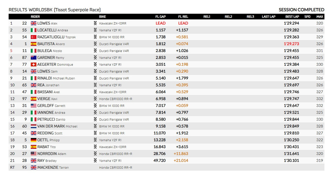 WSBK- Superpole Race - Ordine di arrivo