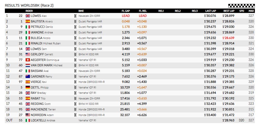 WSBK - Gara2 - Ordine di arrivo