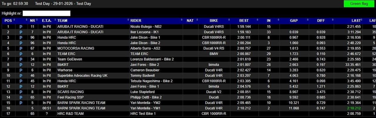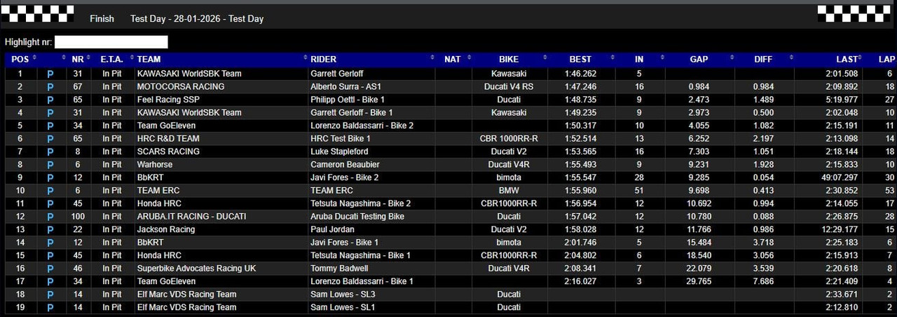 WSBK - Test Portimao Day1 - I tempi della prima giornata