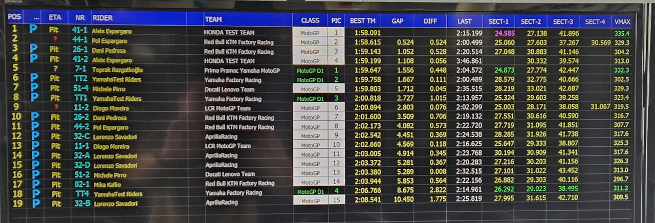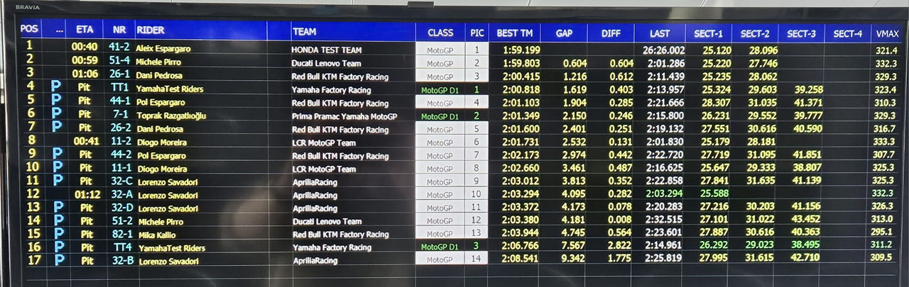 MotoGP - Shakedown Sepang Day1 - I tempi alle 16.00