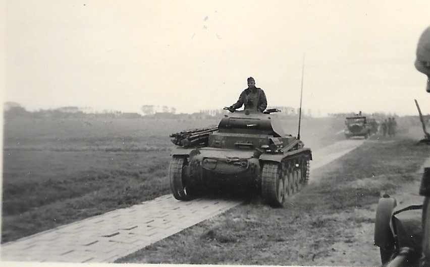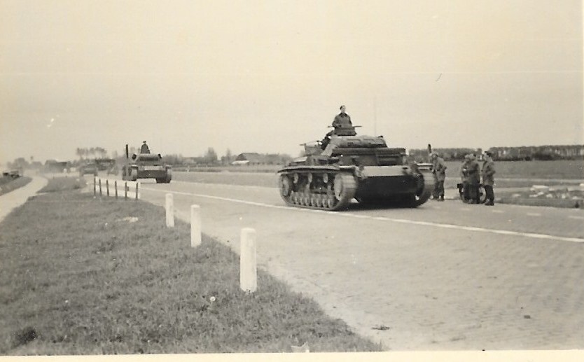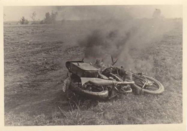 Solo quattro foto in cui appaiono motociclette, sulle cinquanta che compongono un album di un paracadutista che partecipa agli aerosbarchi in Olanda nella zona di Moerdijk maggio 1940: aerei e alianti in volo, zone di lancio, combattimenti, trincee, occupazioni di ponti, requisizioni di veicoli e case.