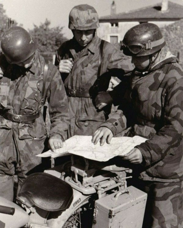 Paracadutisti (probabilmente in Italia), splendide uniformi e bandoliera mimetiche