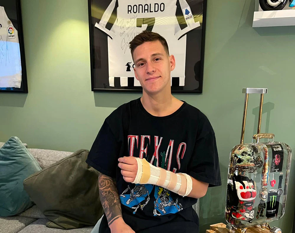 Fabio si è infortunato cadendo in allenamento con la moto da cross, per fortuna una frattura composta che non richiederà intervento chirurgico.