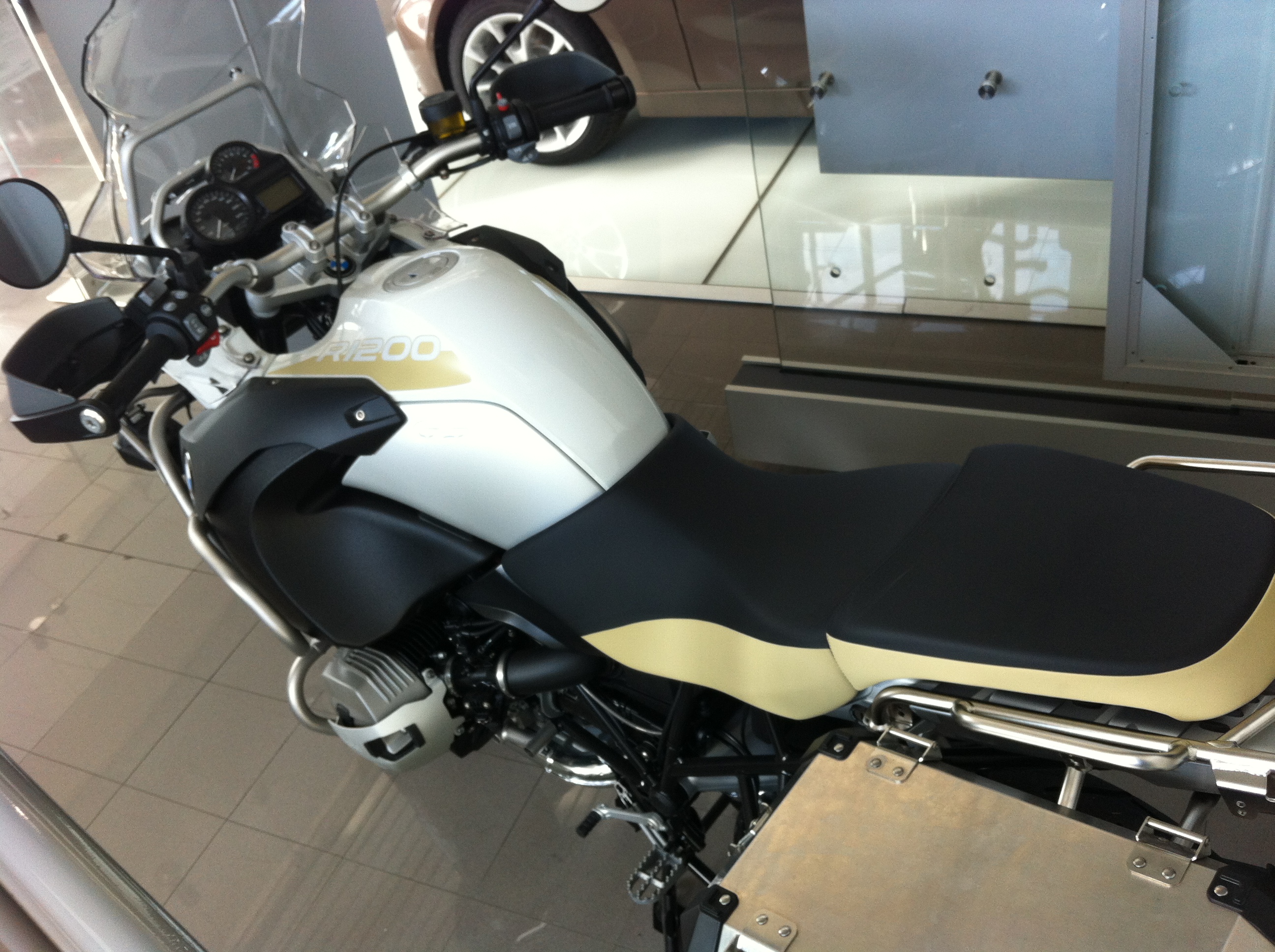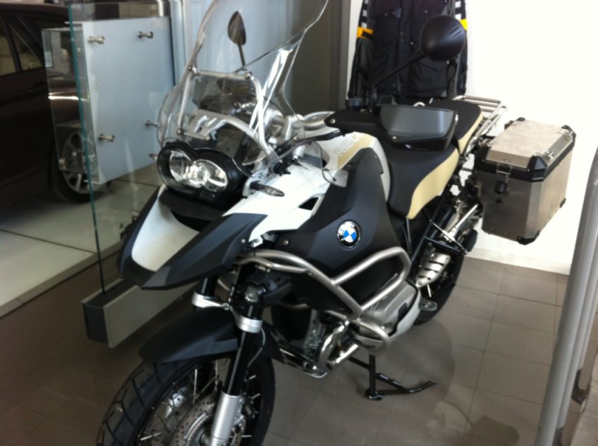 La mia ADV (ALPINE WHITE Sand Rover) è stata immatricolata in febbraio 2013, ha 10500 km (ho appena fatto fare il tagliando da Motoves di VR), e come accessori ha il kit antifurto, le manopole riscaldate ed i telai per i bauletti ALU (non so se siano accessori o di serie), oltre al tris ALU originale e completamente nuovo (me li sono fatti cambiare dall'assicurazione per uno stupido sinistro in garage) ed il TomTom Rider II 2013 con allacciamento canbus e mount Touratech. La moto non è mai caduta se non in garage perchè un'auto me l'ha urtata (e mi sono fatto cambiare tutte le parti danneggiate) e non ha nemmeno un graffio, quindi è come nuova.