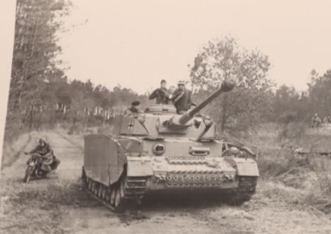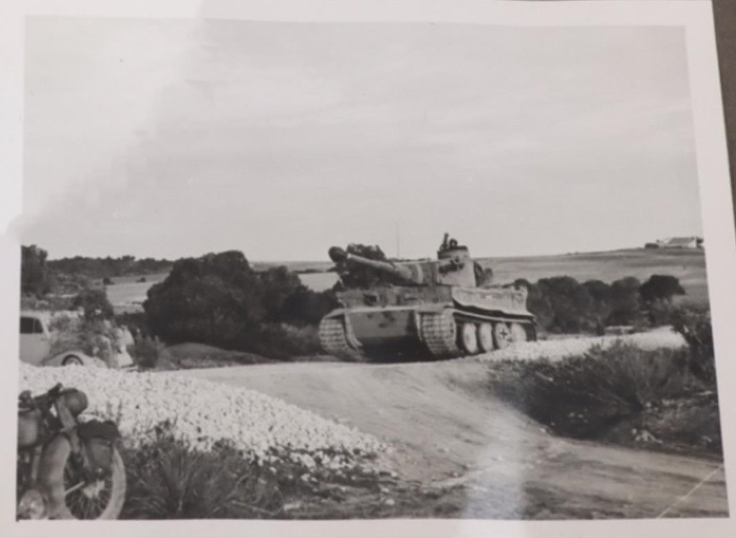 Una moto fa da contorno al passaggio di un Tigre, dall'album di un carrista del Panzer-Abteilung 501 in Tunisia.
