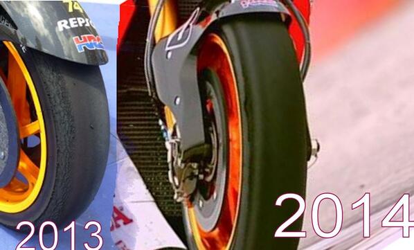 Pare che la gomma anteriore di Marquez mostrata nell'articolo sopra sia dello scorso anno.