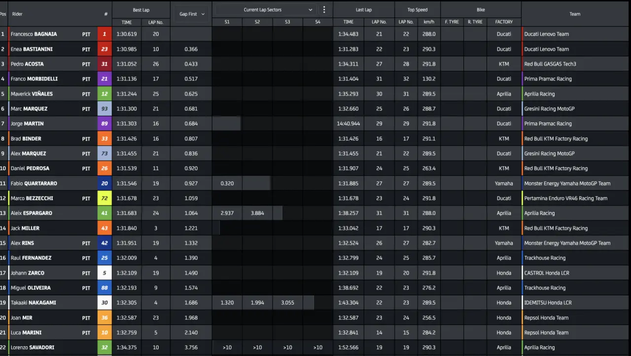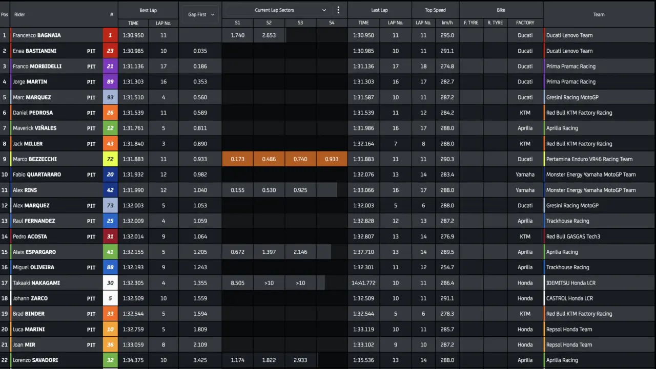 3 16 23 Enea BASTIANINI ITA Ducati Lenovo Team DUCATI 41'57.511 163.1 5.428
