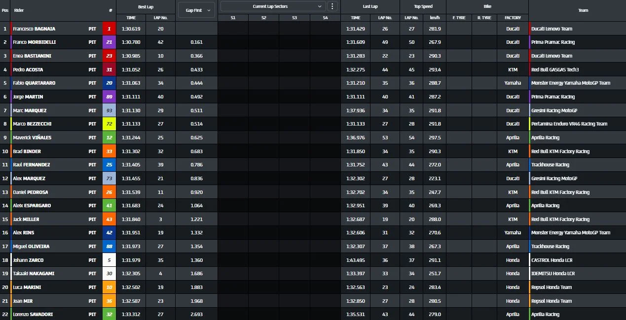 2 20 1 Francesco BAGNAIA ITA Ducati Lenovo Team DUCATI 41'55.185 163.3 3.102