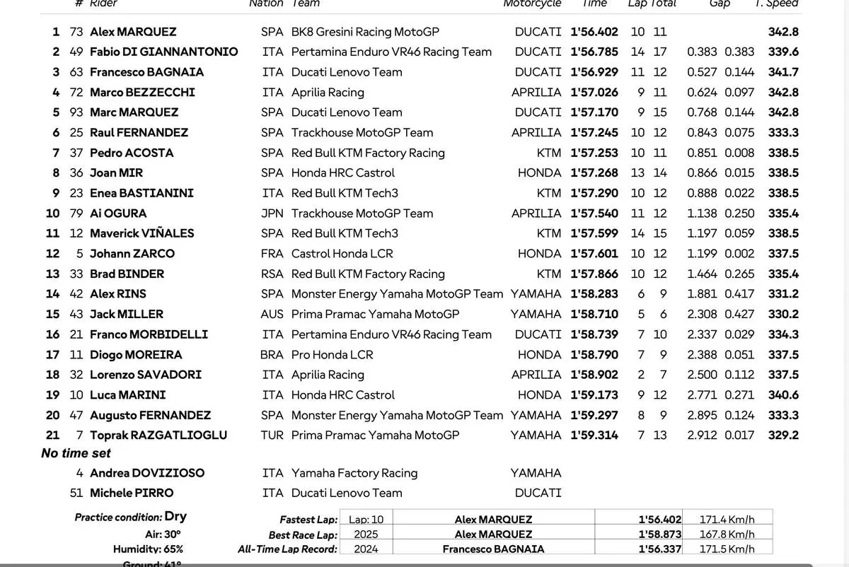MotoGP - Test Sepang Day2 - I tempi della seconda giornata