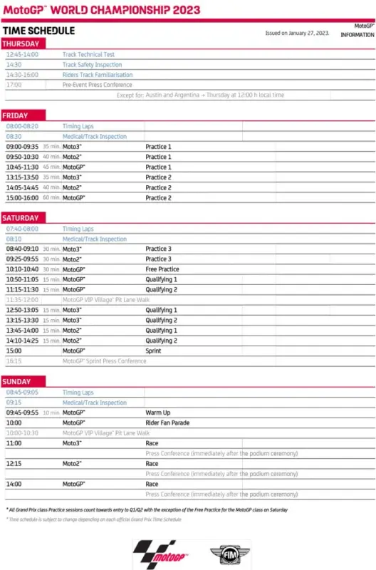 Dal 5 al 7 Febbraio lo Shakedown, riservato a test riders e rookies, poi dal 10 al 12 Febbraio sarà la volta dei piloti ufficiali.