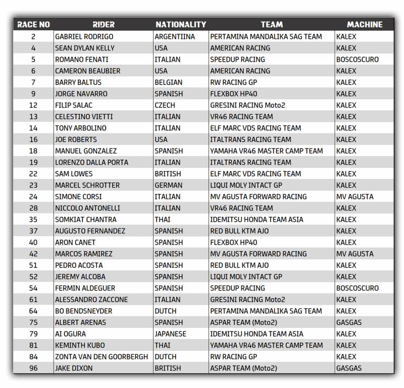 Moto2 - Entry List provvisoria 2022