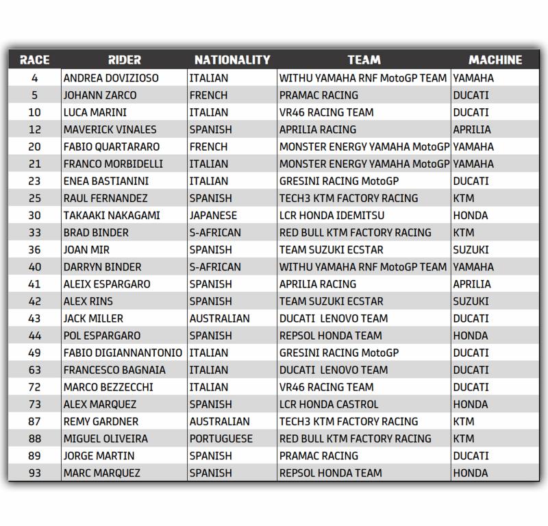 MotoGP - Entry List provvisoria 2022