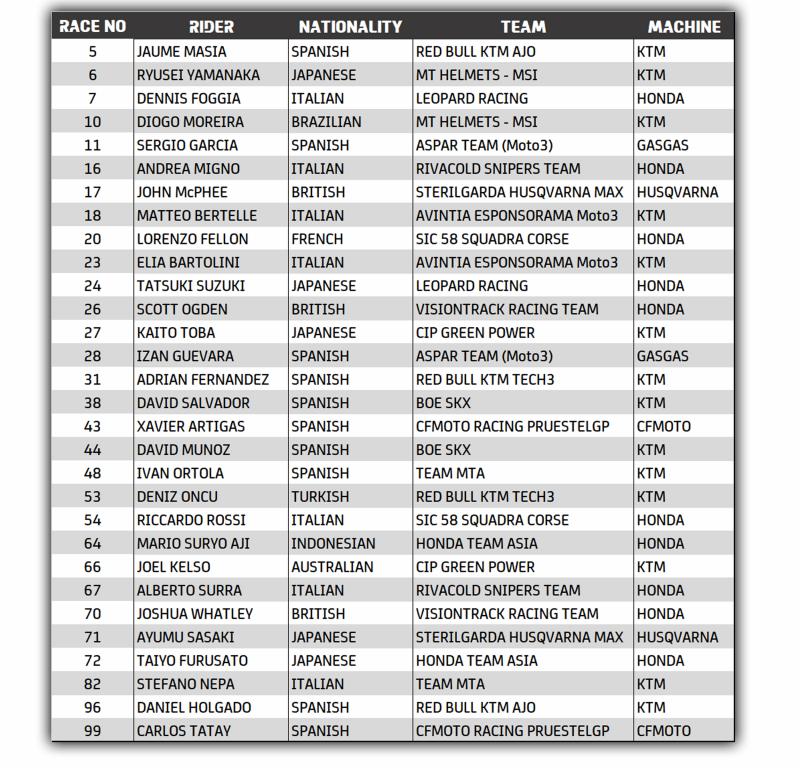 Moto3 - Entry List provvisoria 2022