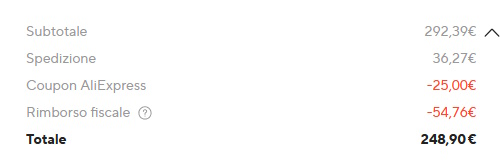 Sì scalato direttamente sul pagamento web, sono state spedite a metà gennaio e non sono ancora arrivate, per vecchie esperienze dovrò pagare circa il 30% del costo totale dell'acquisto, comprese le spese di spedizione.