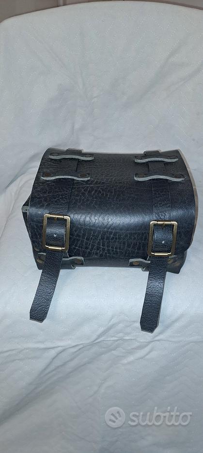 Vendo borsello portattrezzi in robusto cuoio( 5mm spessore circa) colore nero x moto enduro epoca- vintage. Dimensioni 25cm x 20cm x 15 cm altezza. Mai usato in ottimo stato . X Tenere, GS vintage, Dominator, Africa Twin , ecc. Costruito a mano da artigiano Marchigiano. Vendita tra privati senza garanzia o restituzione, le foto fanno parte della descrizione. Con lamiera di fissaggio.