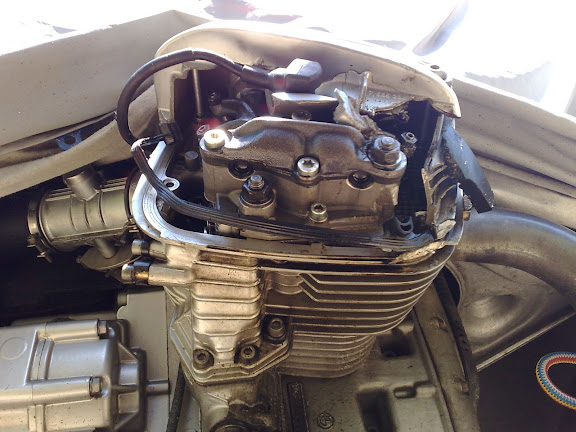 Ora, a distanza di mesi ancora non e' chiara la posizione assicurativa, ma devo cominciare a prendere in considerazione un paio di cose, in primo luogo il fatto che procedero' da solo (fin dove possibile) alla riparazione/sostituzione di tutti i pezzi danneggiati (e non si parla solo di entrambe le teste e serbatoio... manubrio, borse entrambe, staffa sx di sostegno borsa, collettore scarico sx etc.) poi la difficolta' di movimento in assenza di un furgone ed infine un parere che ancora non ho circa l'entita' del danno.......